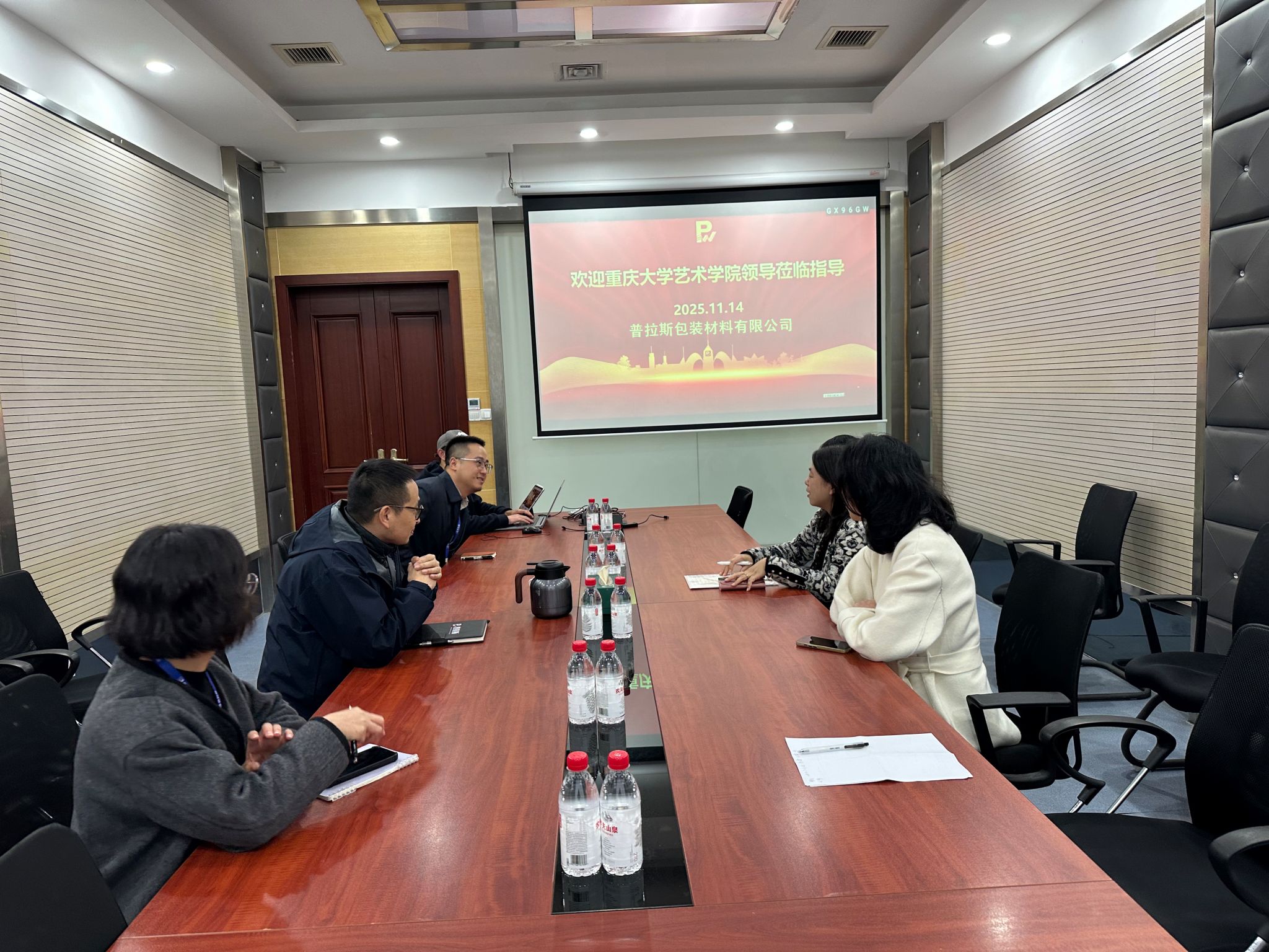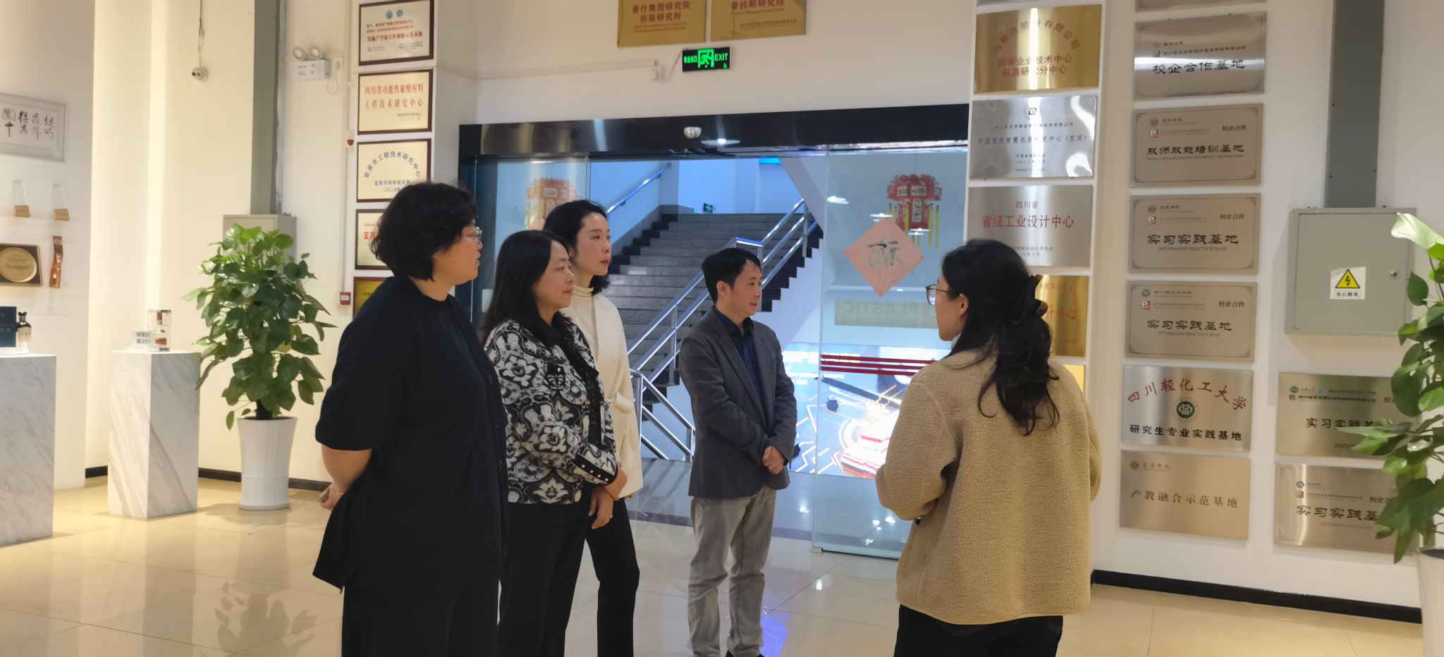 一行,陪同参观智慧包装生产线和研发中心,实地了解企业在智慧包装、绿色制造等方面的创新实践。王传龙表示,近年来企业持续加大研发投入,已获得多项授权专利并成功孵化多款畅销产品,高度重视与高校的合作,期待通过共建实习基地、联合科研项目等方式,共同培养契合行业发展的高素质人才。座谈会上,双方围绕学生实习、项目共研、人才共育等议题深入交流并达成初步合作意向。