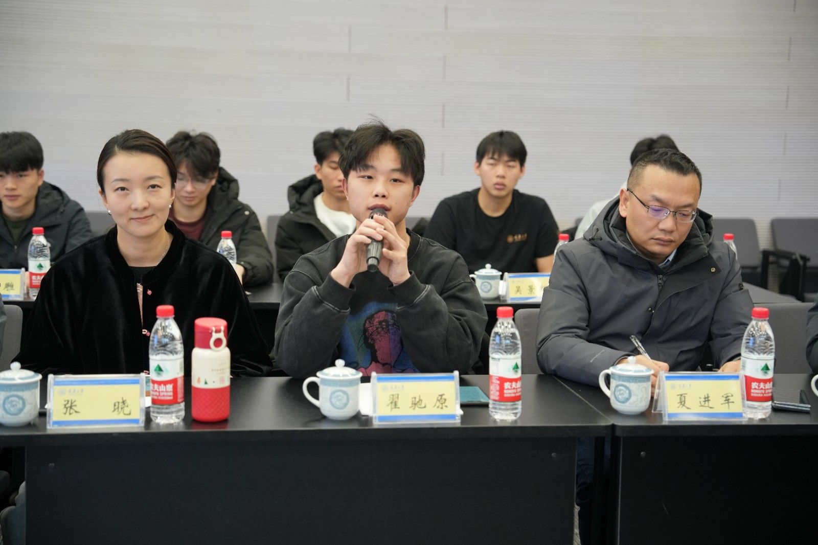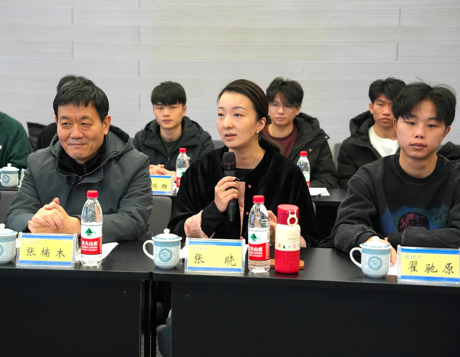 座谈会上,全体共同观看春晚参演工作回忆录MV,视频全面展现了本次参演工作的具体开展情况,深入展现了重大师生不畏困难,拼搏进取的奋斗精神。参演师生代表在会上相继发言,总结了自己在参演过程中的心得与体会。张晓回顾了《手龙人》舞蹈多年的发展历程,并提到团队最终能够成功登上央视春晚舞台,离不开学校的支持与帮助,未来要始终以只问攀登不问高的心态不断打磨作品。林啸难掩激动,向学校领导、师生表示真诚的感谢,他提到,在历经一个多月的排练后,最终成功站上春晚舞台代表重大人举起龙头的那一刻,内心获得了真正的荣耀。翟驰原表达了对学校、学院以及带队老师的衷心感谢,登上春晚成为父母的骄傲让他极度振奋,对未来的学习生活作出积极展望。