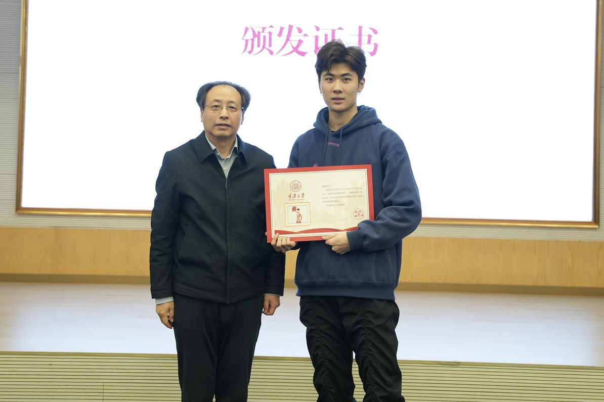 座谈会上,校长为参演师生逐一发放荣誉证书并合影留念。