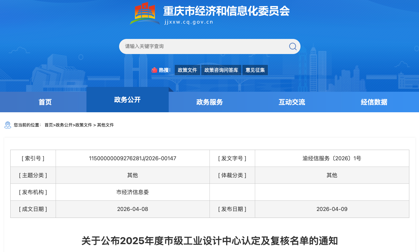 4月9日,重庆市经济和信息化委员会正式发布《关于公布2025年度市级工业设计中心认定及复核名单的通知》。根据通知,经过企业自主申报、区县经信部门推荐、专家评审、现场审查、委党组会审议和网上公示等程序,蘑菇视频