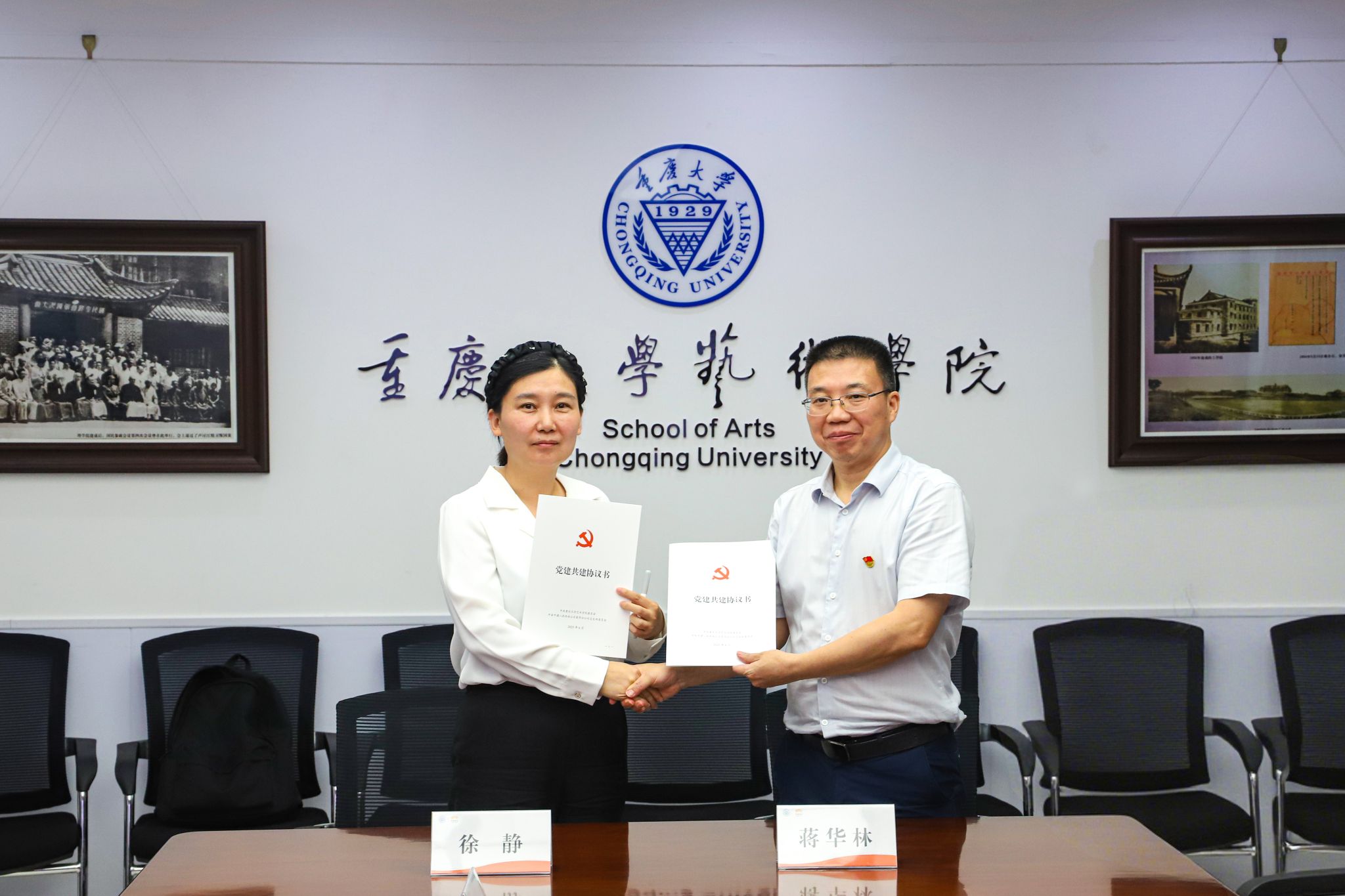 在全体与会人员见证下,蒋华林与徐静代表双方签订了结对共建协议书。