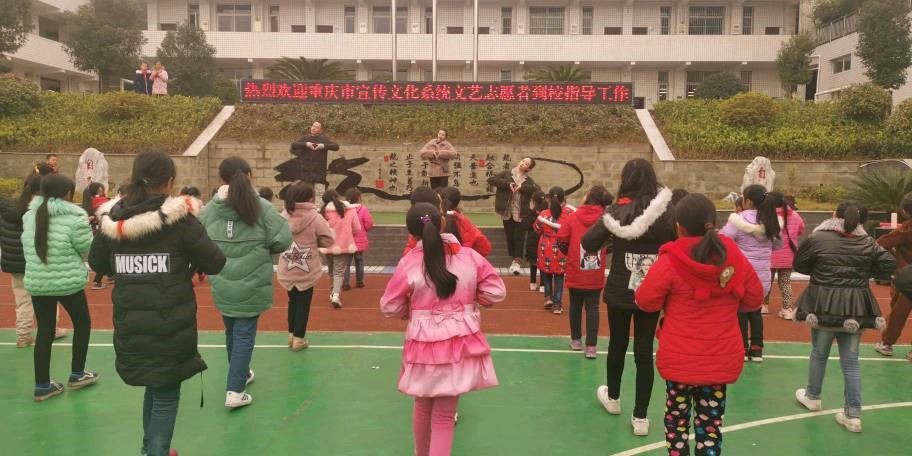 本科学生徐蕾、段依然走进重庆市南川区石溪镇中心小学进行2019重庆市宣传文化系统文艺志愿服务活动,学校的相关领导和老师热情的接待了他们。