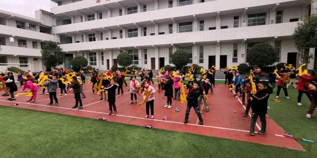 最后,文艺志愿者在操场为孩子们进行了舞蹈教学,为他们做了简单的舞蹈培训。