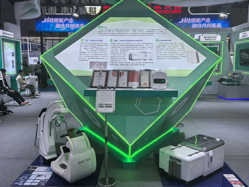 在重庆市科技局的组织下,嘉陵江实验室携四件硬核成果亮相,其中三件来自于重庆嘉陵江实验室与蘑菇视频 工业设计中心跨学科创新设计团队研发的智慧医疗创新设计成果。分别为夏进军教授团队与陆军军医大学第一附属医院(西南医院)感染科医务团队联合研发的PPE removal assistance system为个人防护装备脱卸辅助服务系统;彭科星副教授团队与重庆医科大学附属大学城医院唐博教授团队联合设计的“华佗” 腹腔镜手术机器人及“扁鹊”快速部署微创手术系统运输与应急医疗舱。这三项智慧医疗创新设计成果,旨在面向实际需求,推动科研与临床的紧密结合。其中,个人防护装备脱卸辅助系统,着眼于优化医护人员防护流程,旨在为一线工作人员提供更安全、便捷的操作支持。 “华佗”腹腔镜手术机器人与“扁鹊”快速部署微创手术系统及运输应急医疗舱,则分别探索了精准微创手术技术与机动化医疗解决方案的可行性,为未来医疗应用提供了新的思路。此次展出的三项成果是中心践行“设计赋能科技”理念的具体体现,旨在通过跨学科合作,探索工业设计在智慧医疗等前沿领域的应用潜力。