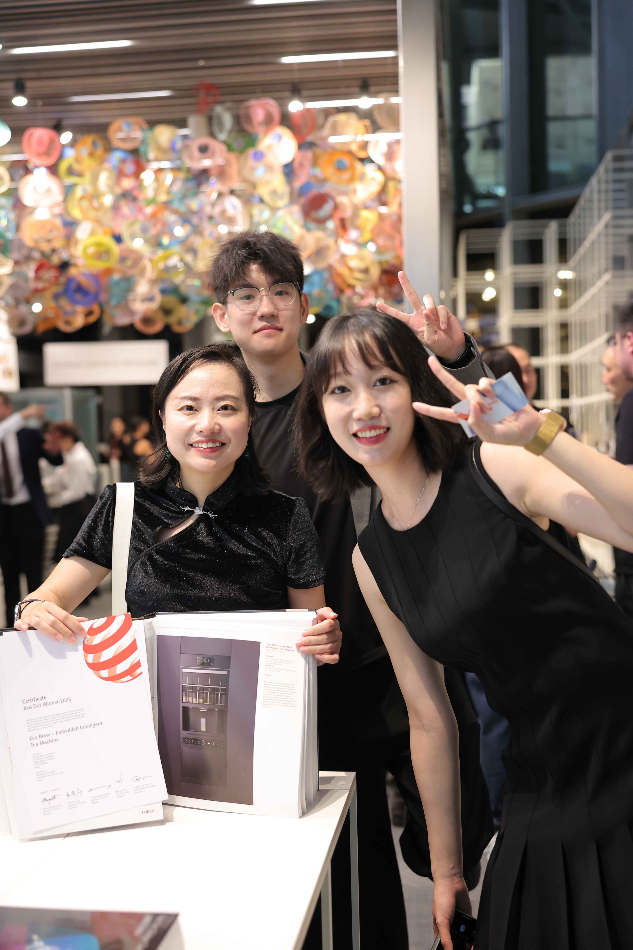 设计学系范正妍师生团队凭借优秀作品“Eco Brew-Embedded Intelligent Tea Machine”(作者:范正妍,夏丹妮,范遥瑶,杨楠,王轩麒,李岚岚,薛方正)斩获该奖项,团队受邀赴新加坡参加颁奖盛典。在盛典现场,成员们接过红点证书并与红点奖创始人兼主席彼得·扎克(Peter Zec)留影合照,充分展现了蘑菇视频
