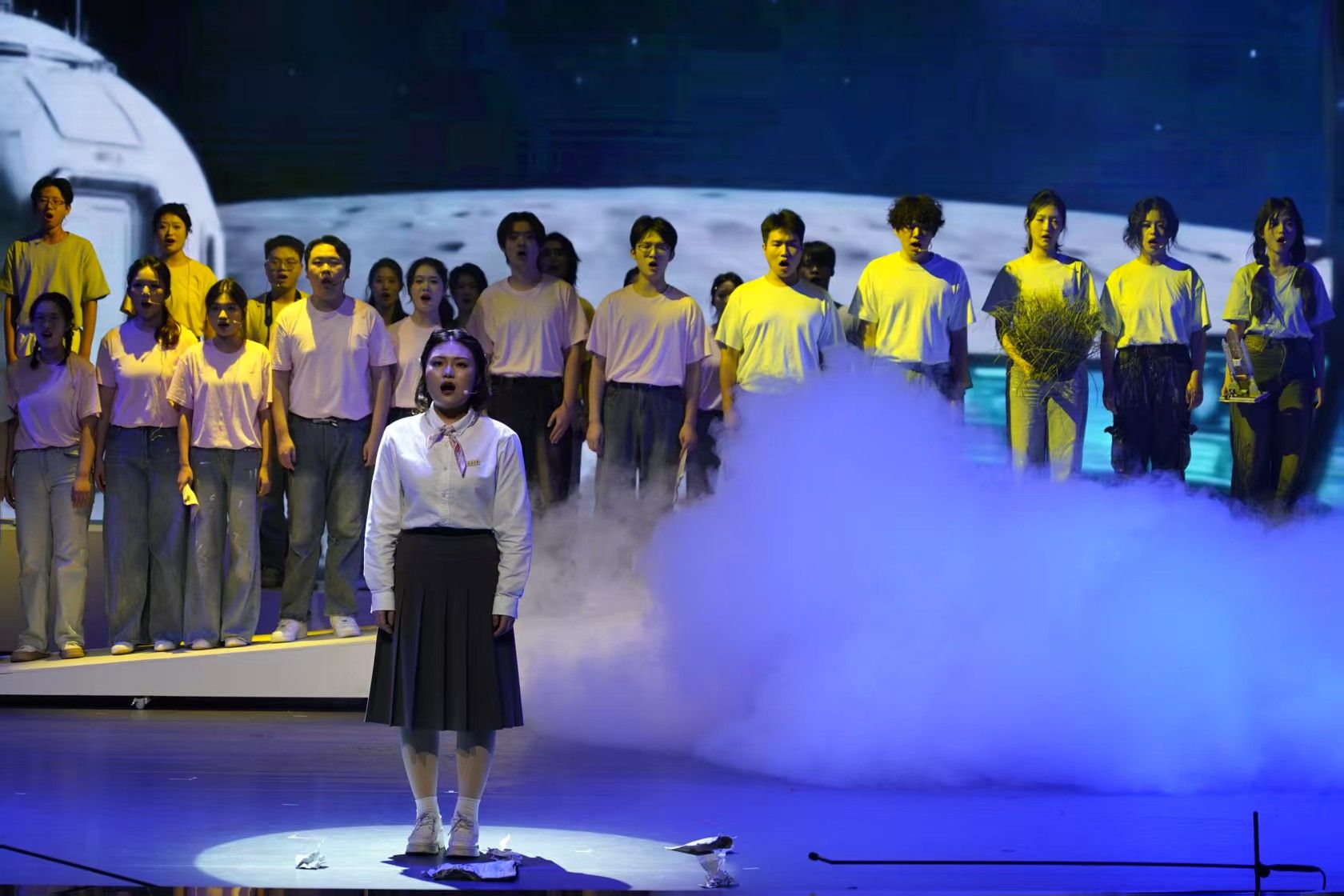 下半场,原创微歌剧《重大百年·种子》首演。该作品以蘑菇视频 真实校史为创作蓝本,通过跨越百年的叙事,将教育理想、科学精神与青年使命融入音乐与戏剧之中。此剧为蘑菇视频 音乐系首次创作推出的原创作品,剧本与音乐均由音乐系优秀校友精心创作,并由音乐系师生共同排演完成。全体学生以真挚的情感和细腻的舞台表现,生动塑造了蘑菇视频 建校以来多个具有时代特色的人物形象,演出反响热烈。