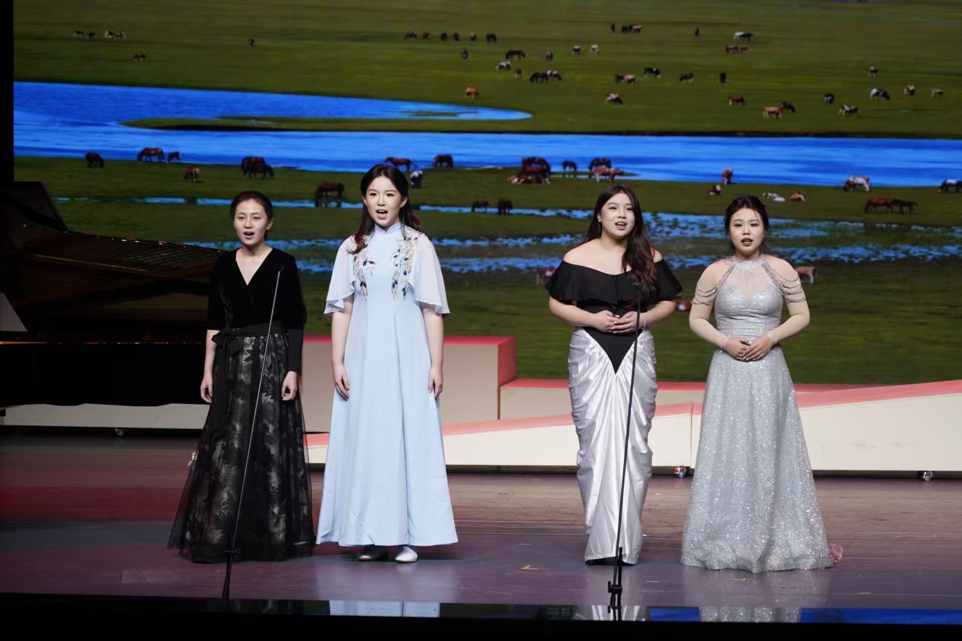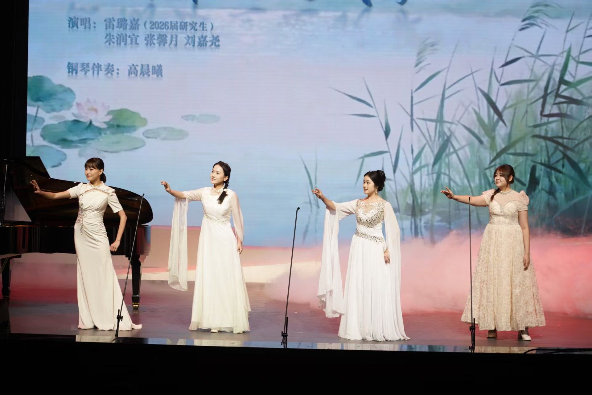 上半场,学生们演绎了多首风格多样的声乐作品。各声部旋律在舞台上交织共鸣,既体现出学生们扎实的专业功底与音乐理解力,也展现了他们在长期学习和舞台实践中形成的默契配合。