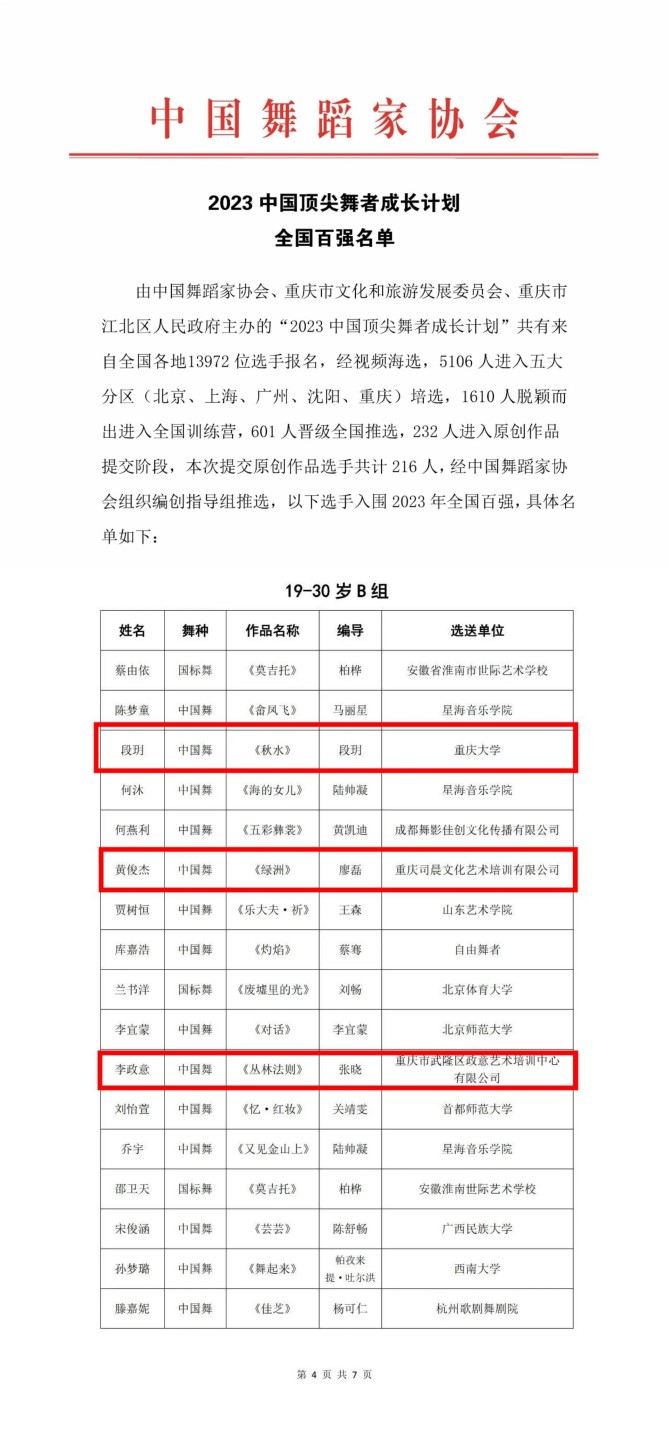 2023年9月14日,由中国舞蹈家协会发布了2023中国顶尖舞者成长计划全国百强名单,蘑菇视频