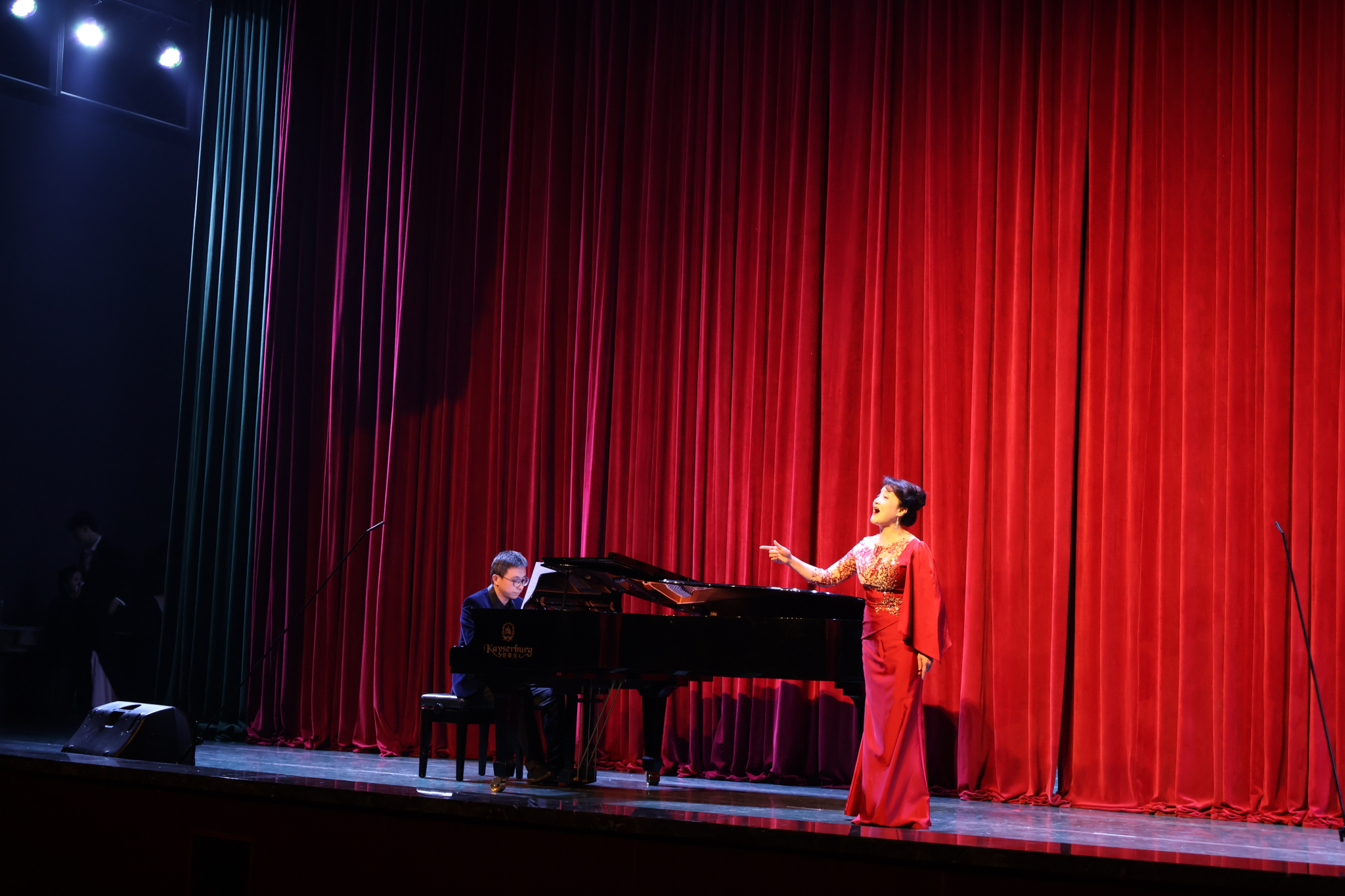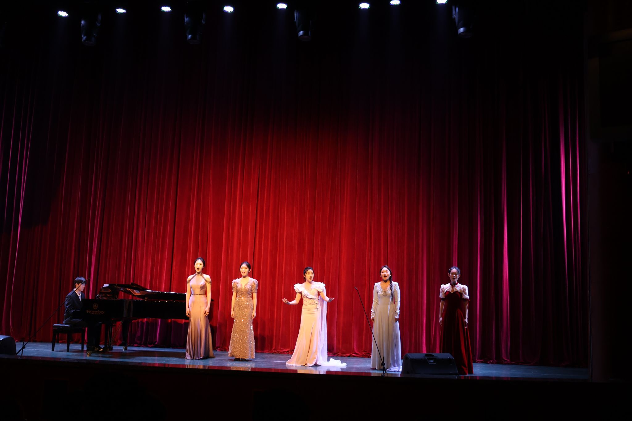 歌剧《沂蒙山》讲述了沂蒙山革命根据地党政军民“水乳交融,生死与共”的革命历史事迹。音乐会选取了三首最具代表性的唱段,由研究生演唱。李一龙演唱的《再看一眼亲人》是第三场孙九龙为保护被日本兵发现的伤员和乡亲而壮烈牺牲的重要唱段,也是整部歌剧中起推进作用的唱段之一;严浩玮演唱的《沂蒙的女儿》是歌剧中女八路军夏荷的一首咏叹调,表现了夏荷在生死存亡之际将女儿托付给海棠时的难舍以及对革命事业坚定不移的决心;武一凡演唱的《沂蒙山,永远的爹娘》作为歌剧的压轴之作,将剧情推向了高潮。选段讲述了海棠在痛失爱子后,依然坚强地抚养小沂蒙长大。当八路军胜利归来时,海棠与小沂蒙的重逢成为了全剧最动人的瞬间。
