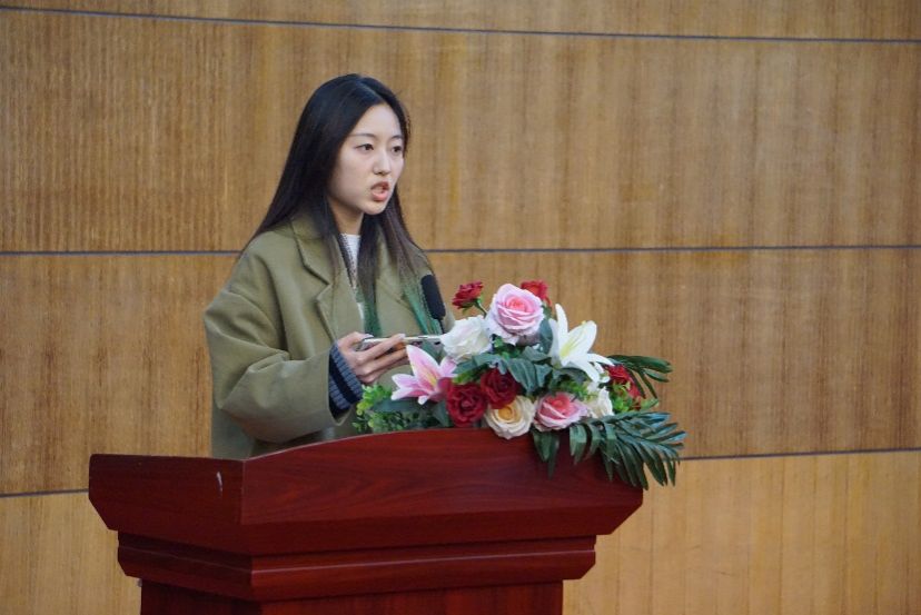 获奖学生代表李姿洁发言,代表学弟学妹对学长们给予的大力支持和激励表示衷心感谢,并表示将向优秀学长们学习,不负青春韶华,不负殷切期望,努力学习奋斗,以优异的成绩感恩学院的培养。