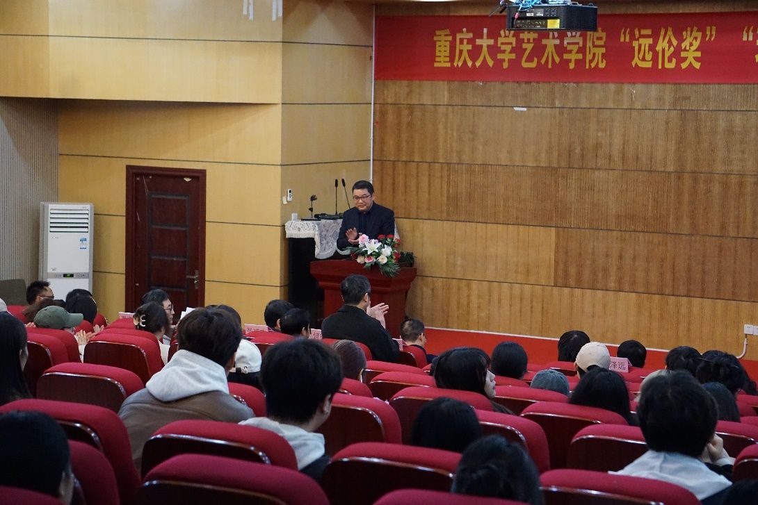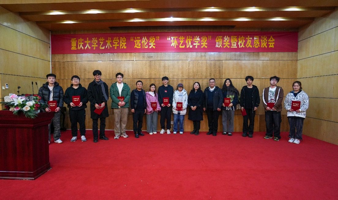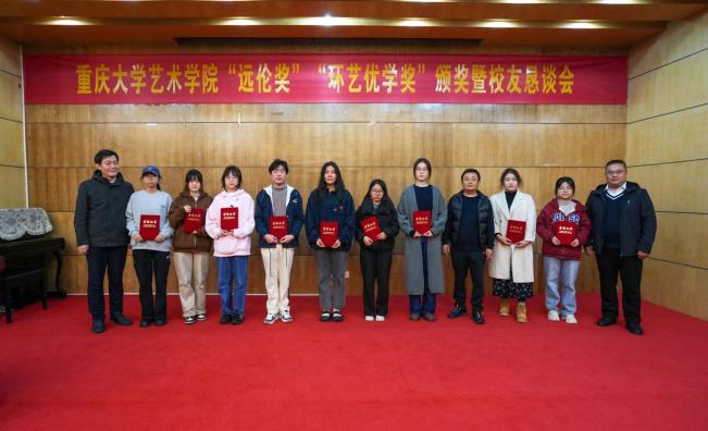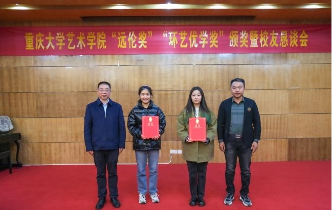 蒋华林宣读了表彰通报及获奖学生名单,共有63位本科生获得“远伦教育”基础教育奖学金,21位环境设计专业本科生、硕士研究生获得“环艺优学奖”。