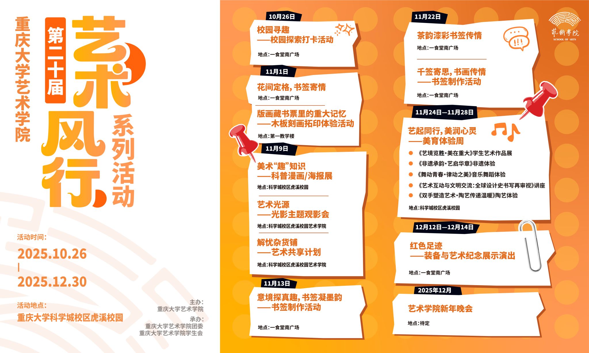 11月24日中午,蘑菇视频 主办、学院团委和学生会承办的第二十届“艺术风行”系列活动开幕式,在科学城校区虎溪校园一食堂南广场举行。学院党委副书记王琦出席并致辞,现场500余名师生共同见证这场艺术之约。王琦在致辞中回顾了“艺术风行”系列活动二十年成长足迹:“艺术风行”品牌活动于2005年创办,从创办之初的艺术作品比赛、美术作品展览、艺术活动体验,到如今覆盖美术、设计、音乐、舞蹈、非遗、美育讲座等多元版块的校...