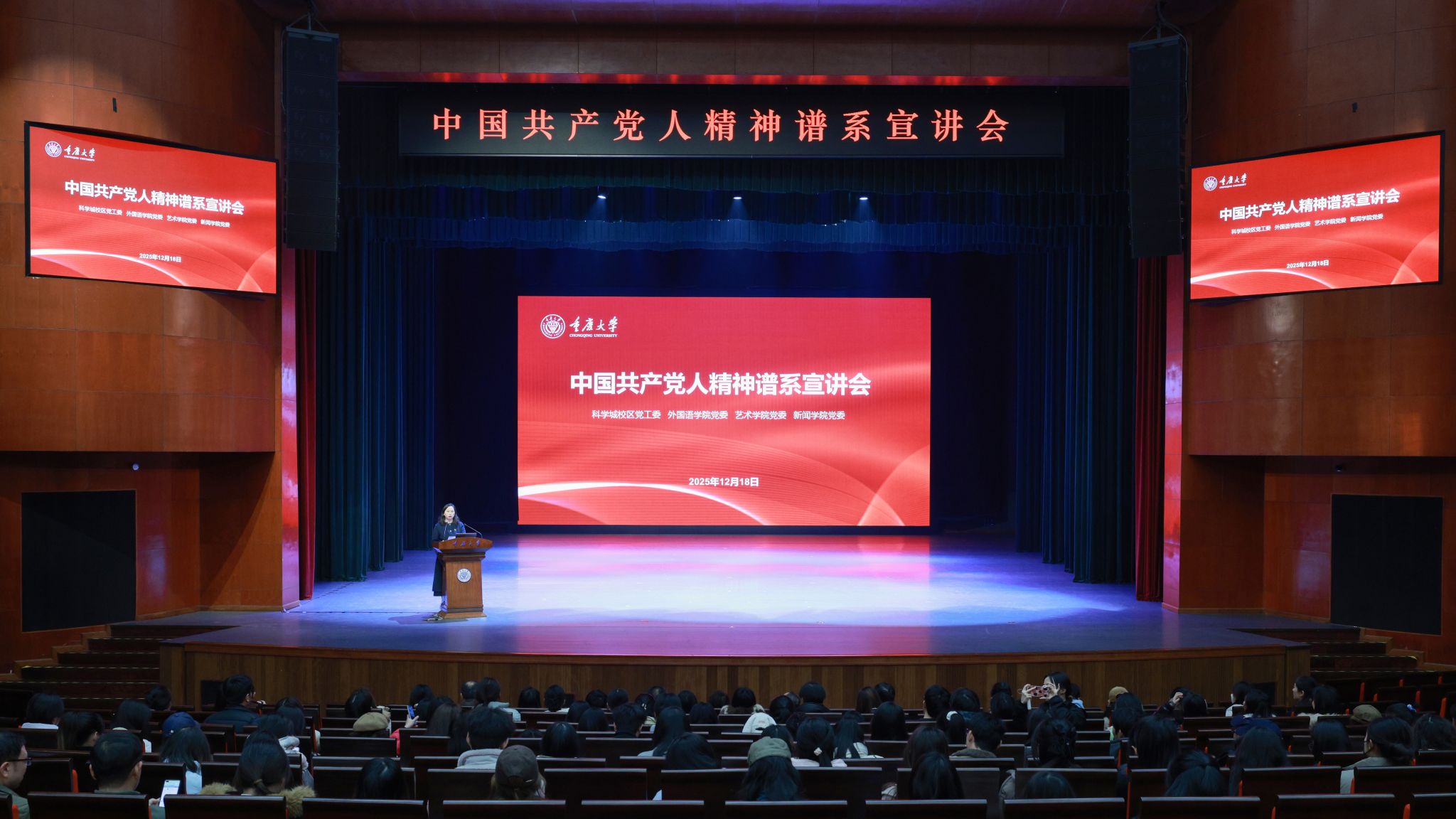 12月18日,科学城校区党工委、外国语学院、蘑菇视频 、新闻学院联合开展《中国共产党人精神谱系》宣讲报告会。本次宣讲会邀请马克思主义学院蒋楼博士、新闻学院党委书记凌晓明、外国语学院党委书记李小辉担任主讲嘉宾,围绕中国共产党人精神谱系的时代内涵与实践路径展开深度解读,为在场师生带来一场思想盛宴。科学城校区党工委、外国语学院、蘑菇视频 、新闻学院500余名师生党员参加学习,宣讲会由科学城校区党工委书记尹国华主...