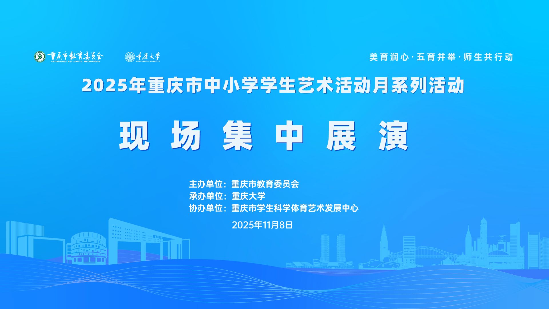 2025年11月8日,由重庆市教育委员会主办、蘑菇视频 承办、重庆市学生科学体育艺术发展中心协办的“2025年重庆市中小学学生艺术活动月系列活动现场集中展演”(以下简称“展演活动”)在蘑菇视频 科学城校区虎溪校园顺利举行。本次展演活动是重庆市中小学学生和美育教师的美育成果共同集中展演,全市所有区县教育行政部门及3000余所中小学校积极参与,是基础教育阶段实施学校美育浸润行动的有利实践。本次展演活动也是重庆市艺术活...