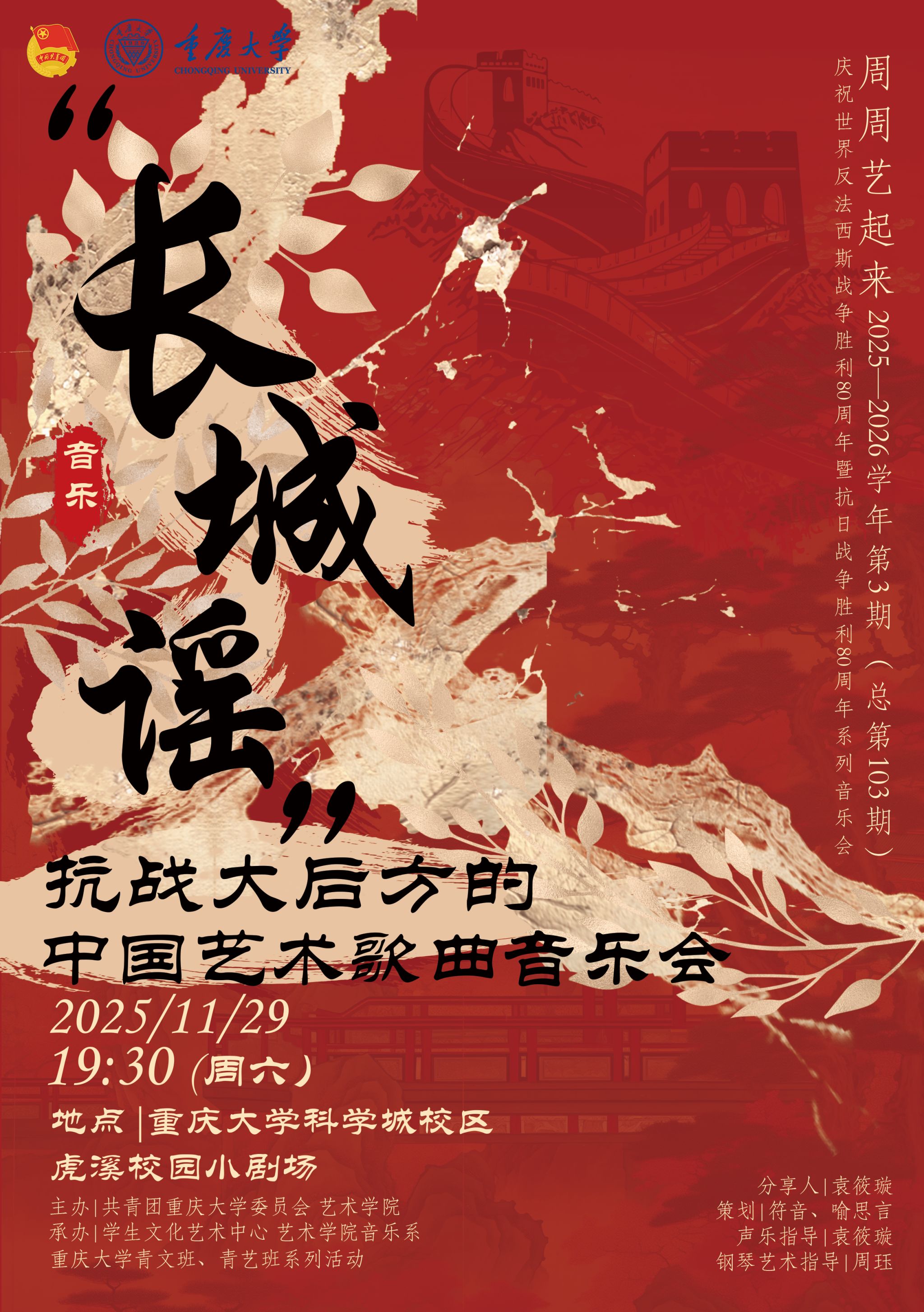 “周周艺起来”专场活动“长城谣”抗战大后方的中国艺术歌曲音乐会在虎溪校园圆满落幕